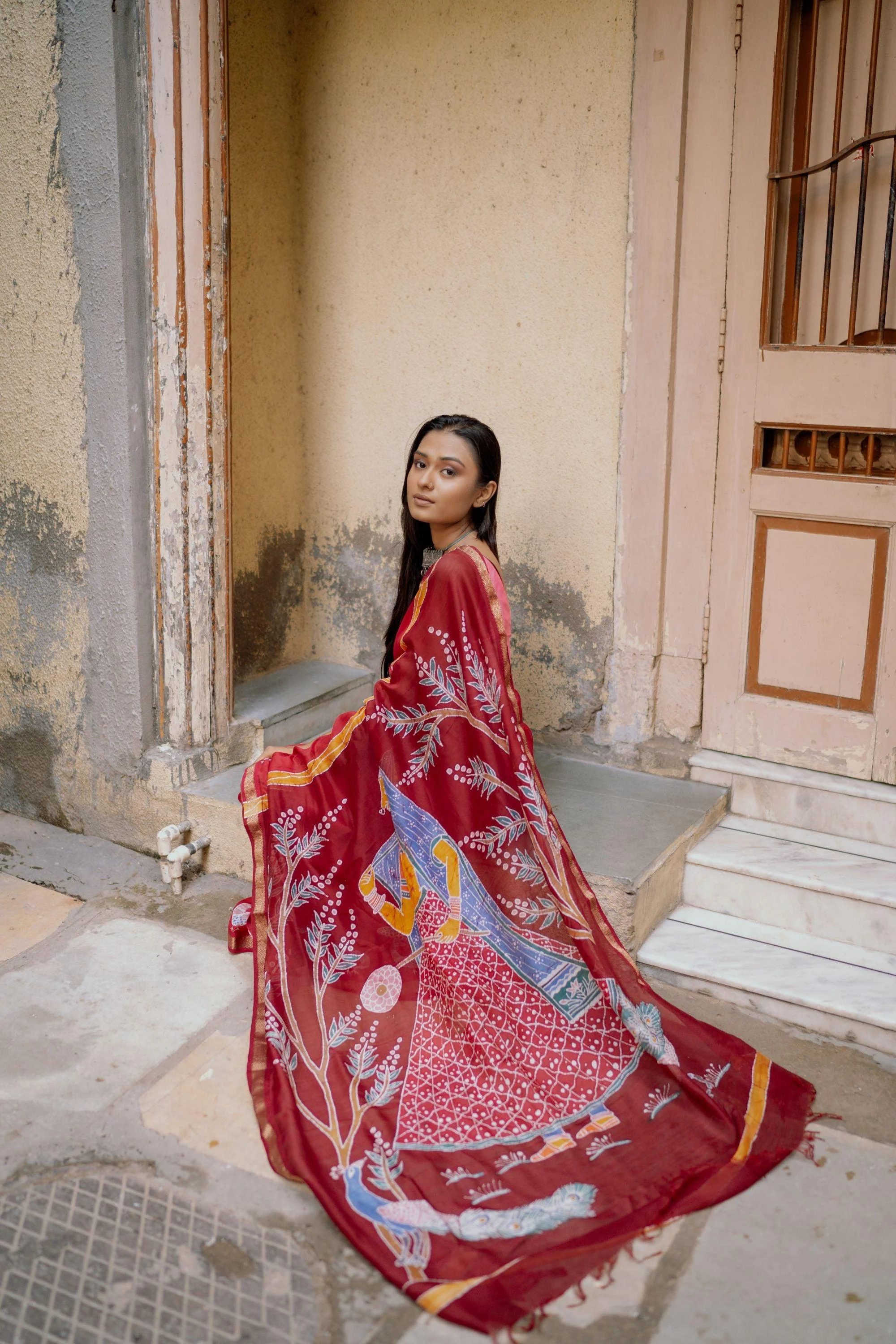 This time we have imagined her as the powerful narrator of craft-stories from Madhya PradeshĀ and Rajasthan- blended into one exquisite, truly one-of-a-kind, saree collection.Our story is a culmination of craft and art narratives of ā Ragini of Bundi, Batik by Chippa community from Ujjain and Maheswari by Ansaris from the region.