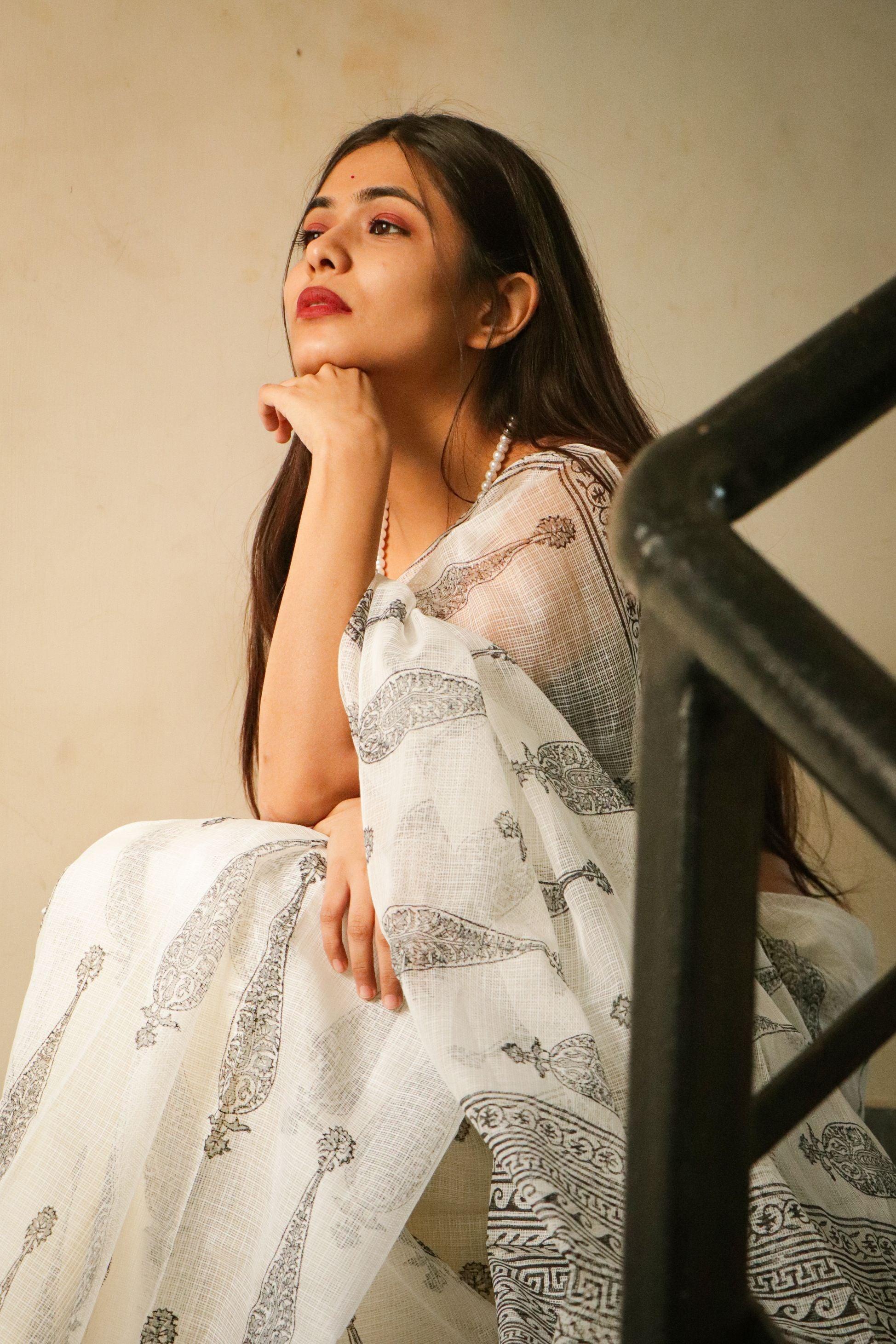 Our Kota range is truly one of a kind. Inspired by the gentle touch of a summer breeze over an ethereal lake, these sarees are masterfully woven by the karigars of Kaithoon and elegantly adorned with Sanganeri block prints on the borders and body, creating a chic and captivating drape story.