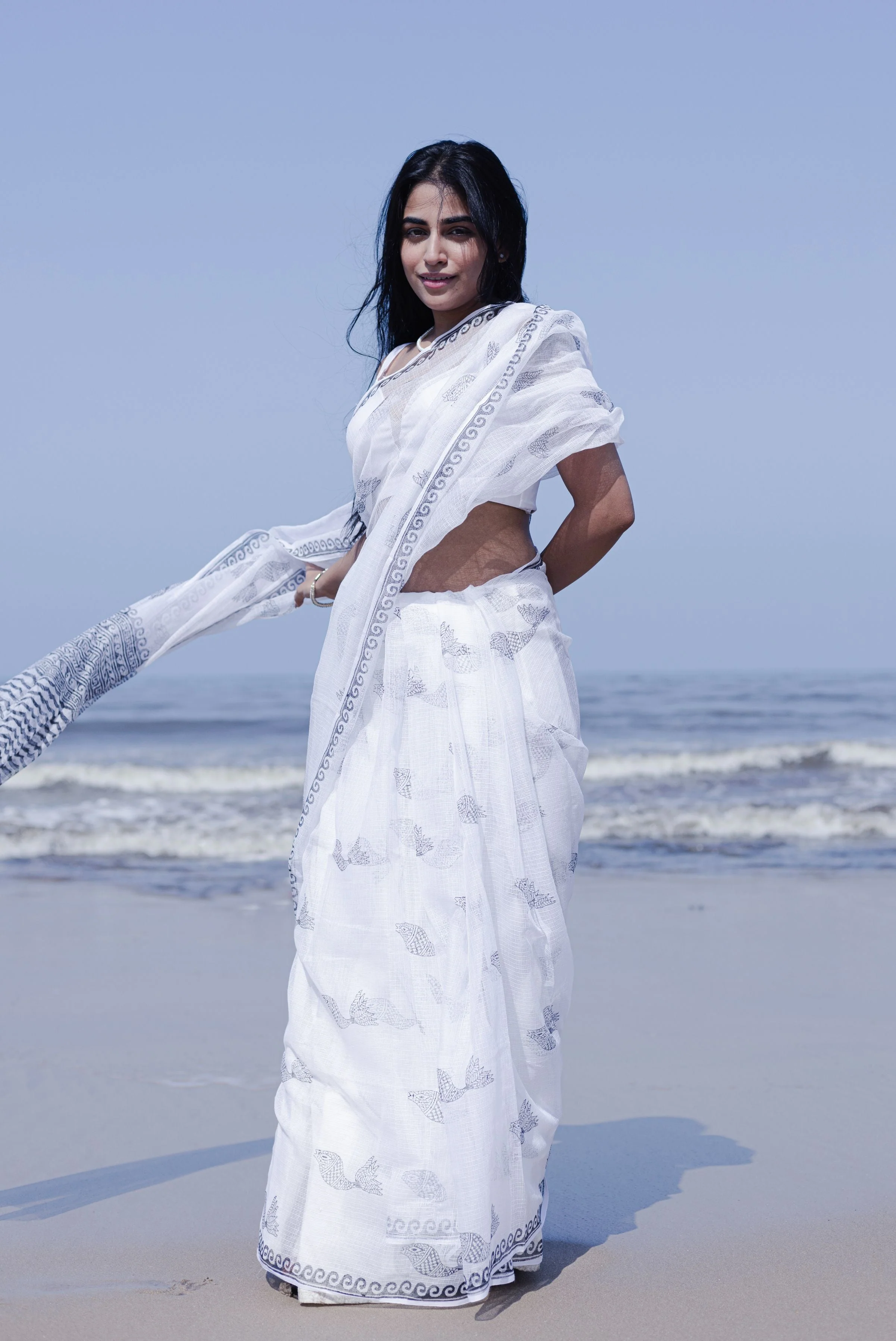 - Material: Handwoven Kota Doria (silk-cotton), hand-block printed with azo-free dyes.