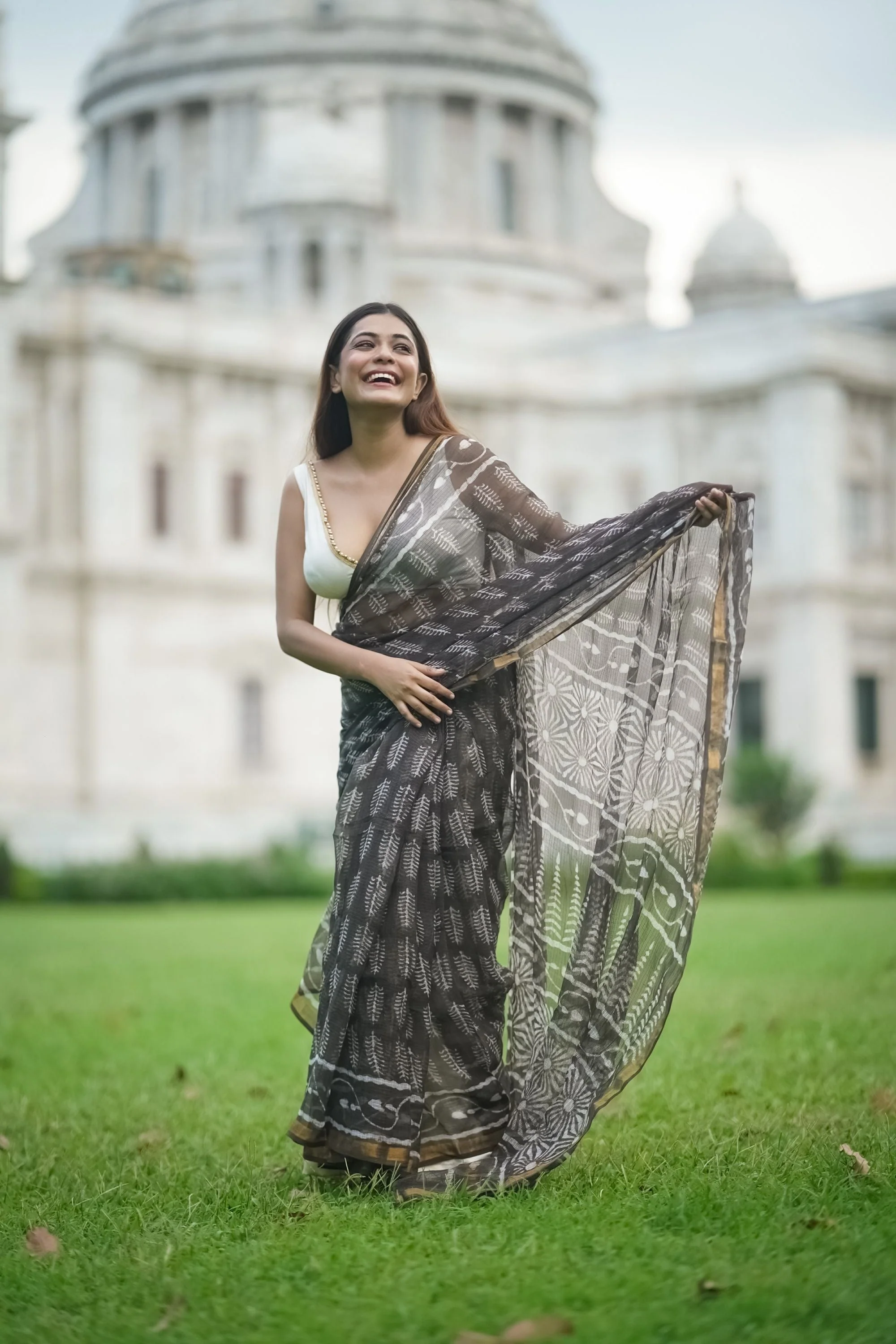 Our Kota range is truly one of a kind. Like the summer breeze on an ethereal lake, it is woven by the karigars of Kaithoon and interlaced with Dabu block printing on the borders and body to craft this chic new drape story.