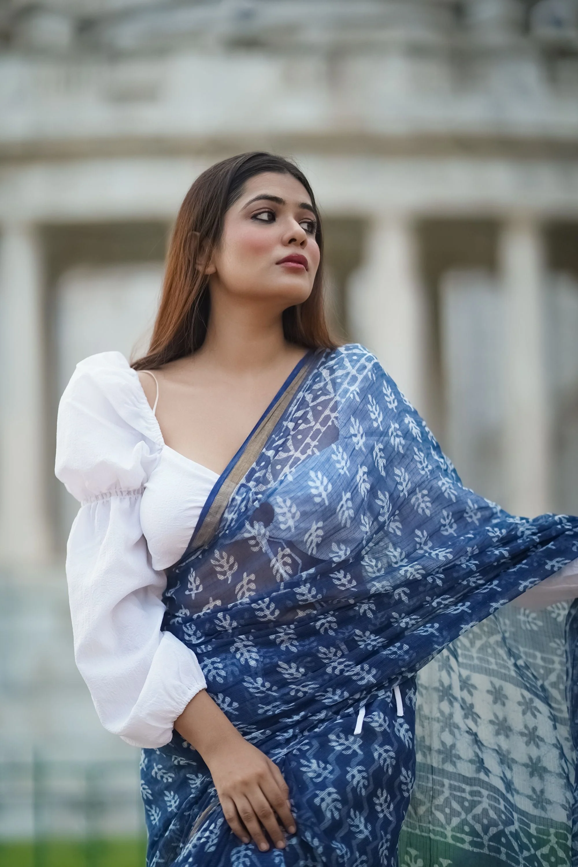 Our Kota range is truly one of a kind. Like the summer breeze on an ethereal lake, it is woven by the karigars of Kaithoon and interlaced with Dabu block printing on the borders and body to craft this chic new drape story.