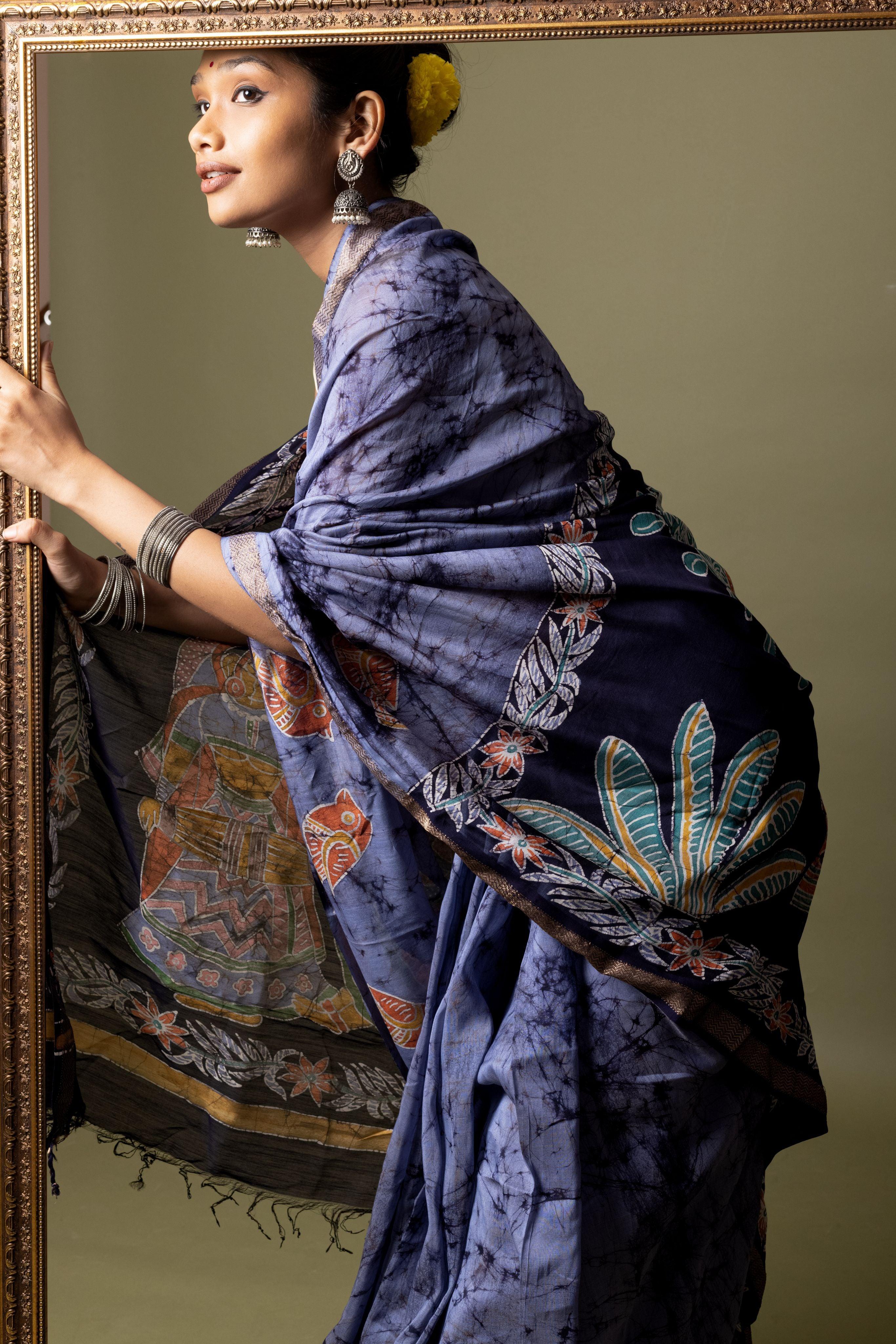Batik Chanderi saree - Narmada- Nila