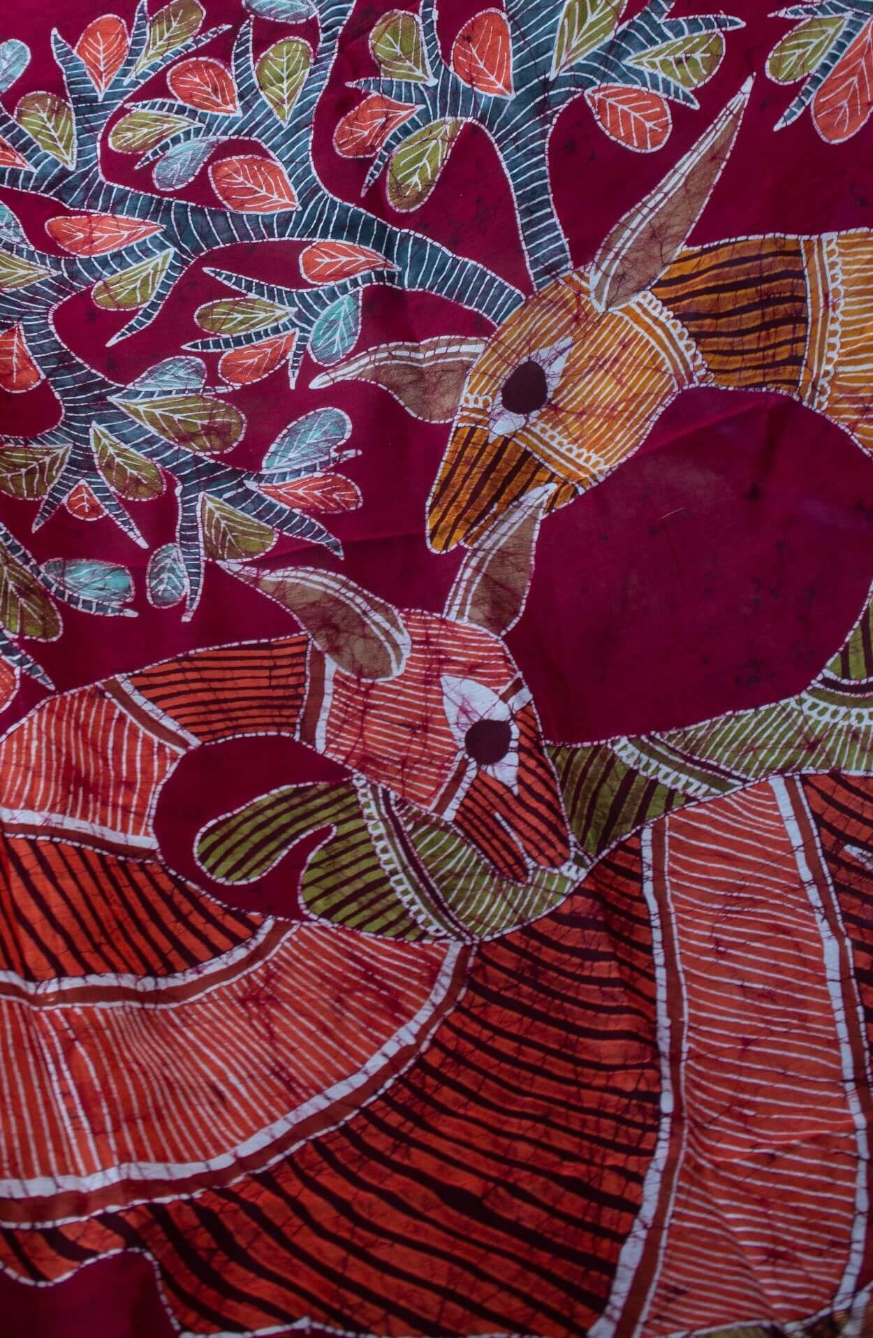 - Art: Hand-painted Batik inspired by Gond tribal motifs, crafted with azo-free dyes