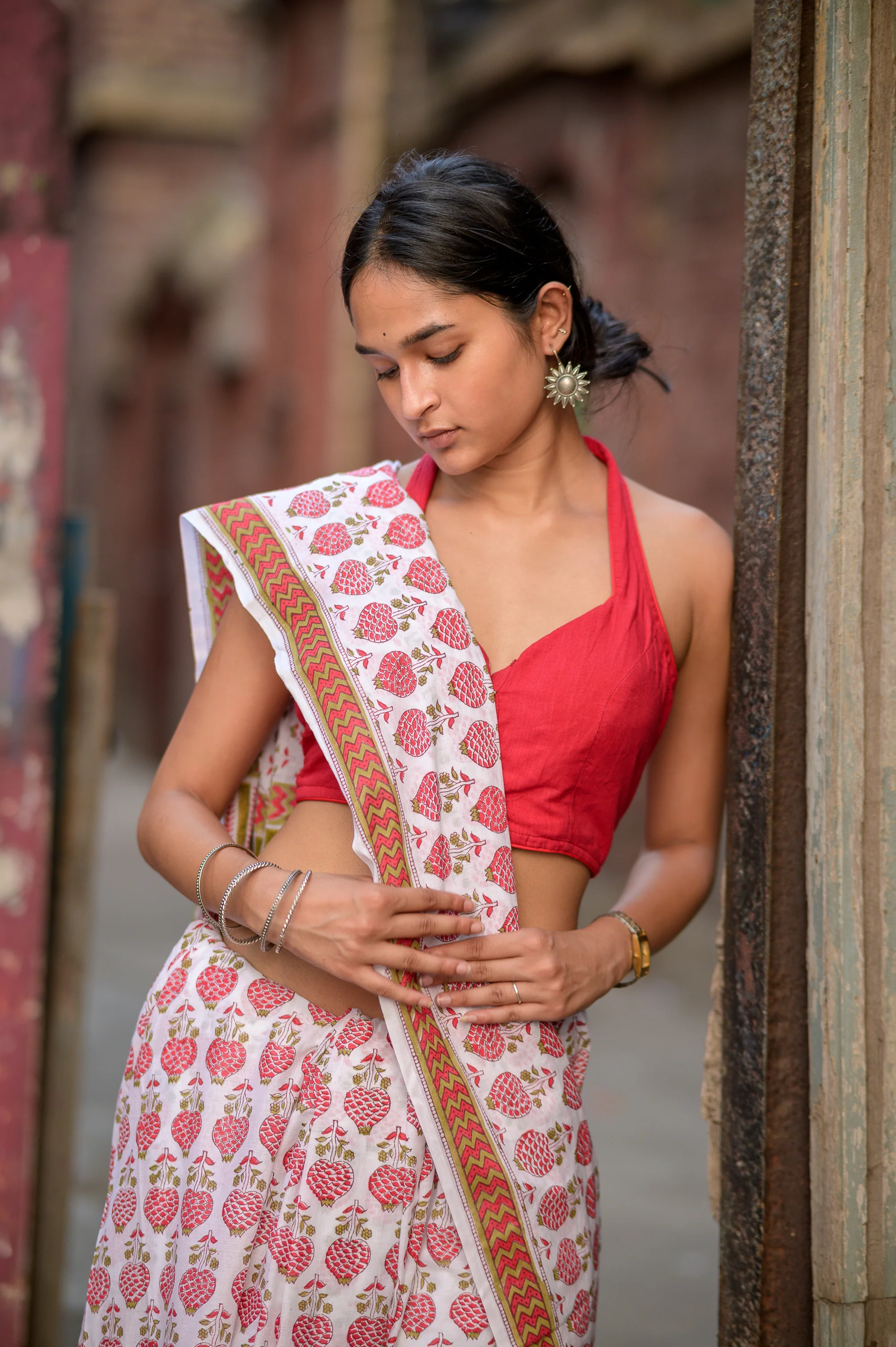 Fabric: Soft cotton saree, hand-block printed in azo-free dyes.