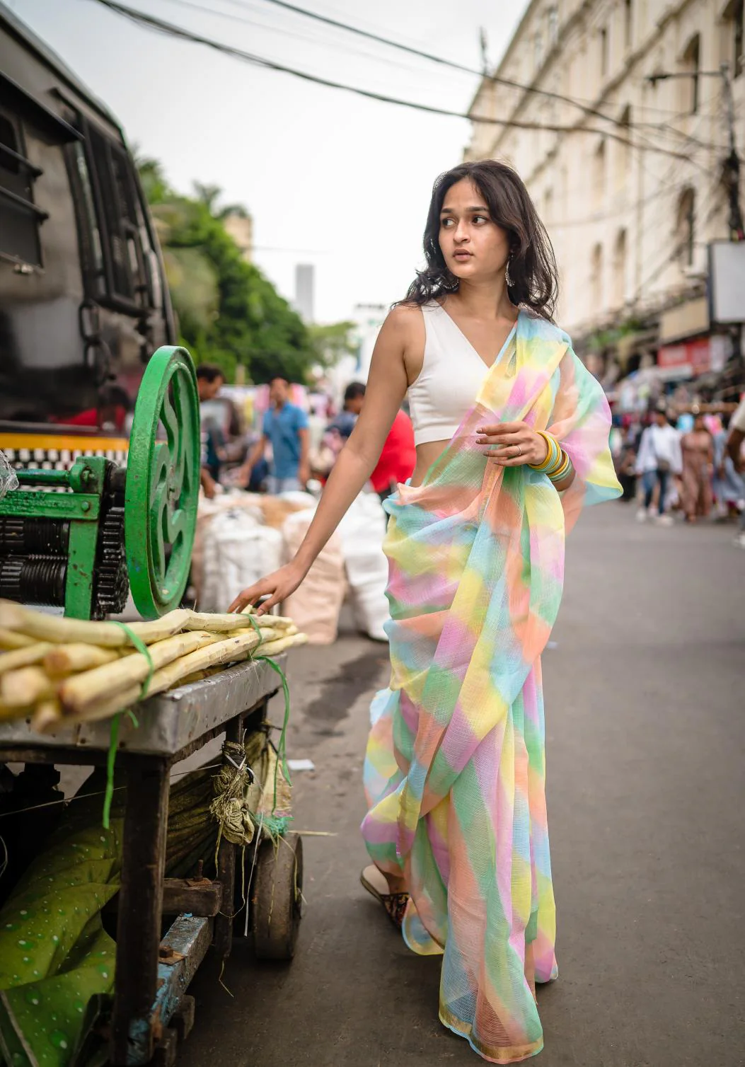 Our Aira Jaipuri Leheriya saree range is truly one of a kind. Hand-dyed after intricate knot tying in the historic lanes of Jaipur, it features pristine white Kota fabric adorned with Leheriya patterns on the border and body, crafting a chic new drape story.