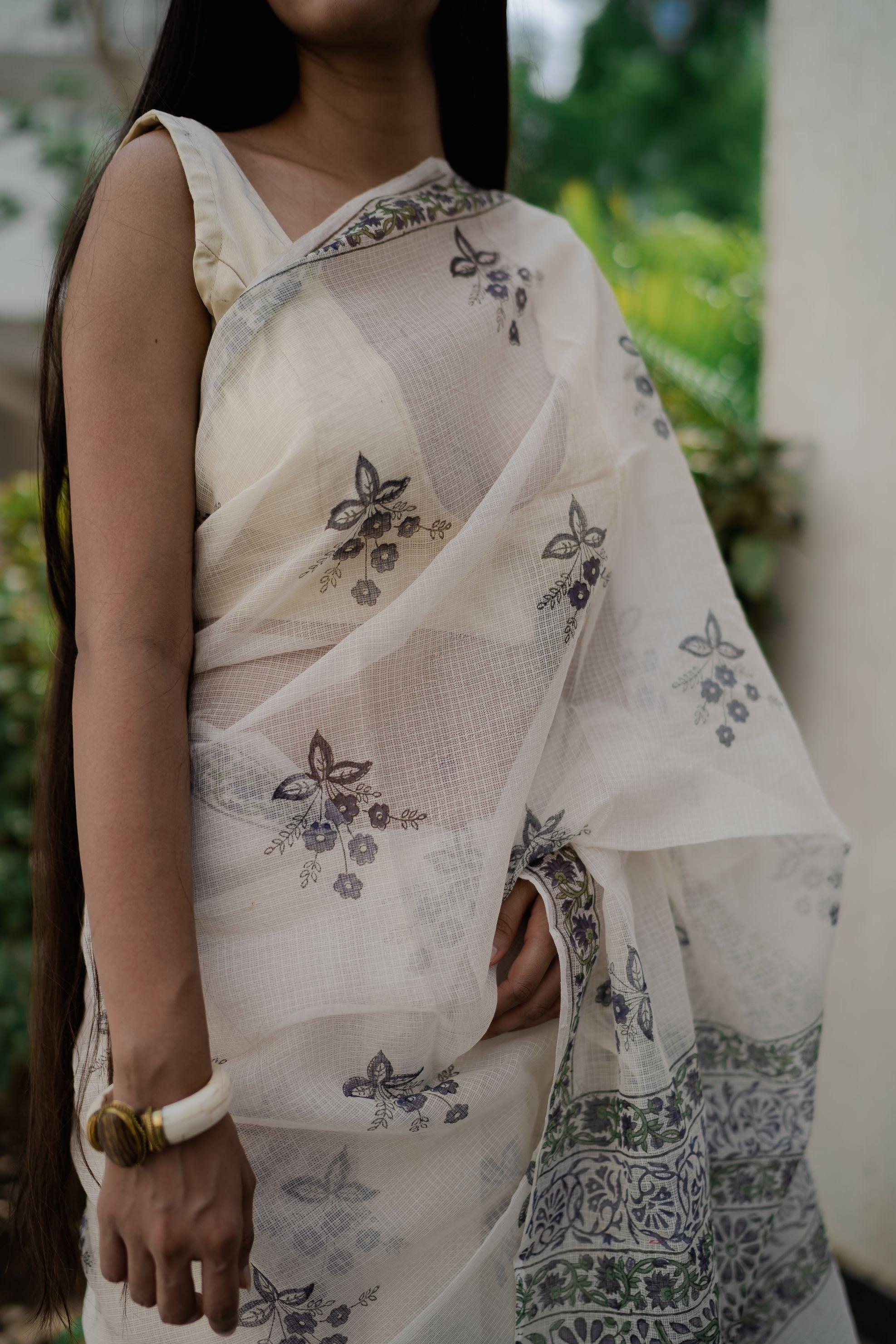 Our Kota range is truly one of a kind. Inspired by the gentle touch of a summer breeze over an ethereal lake, these sarees are masterfully woven by the karigars of Kaithoon and elegantly adorned with Sanganeri block prints on the borders and body, creating a chic and captivating drape story.