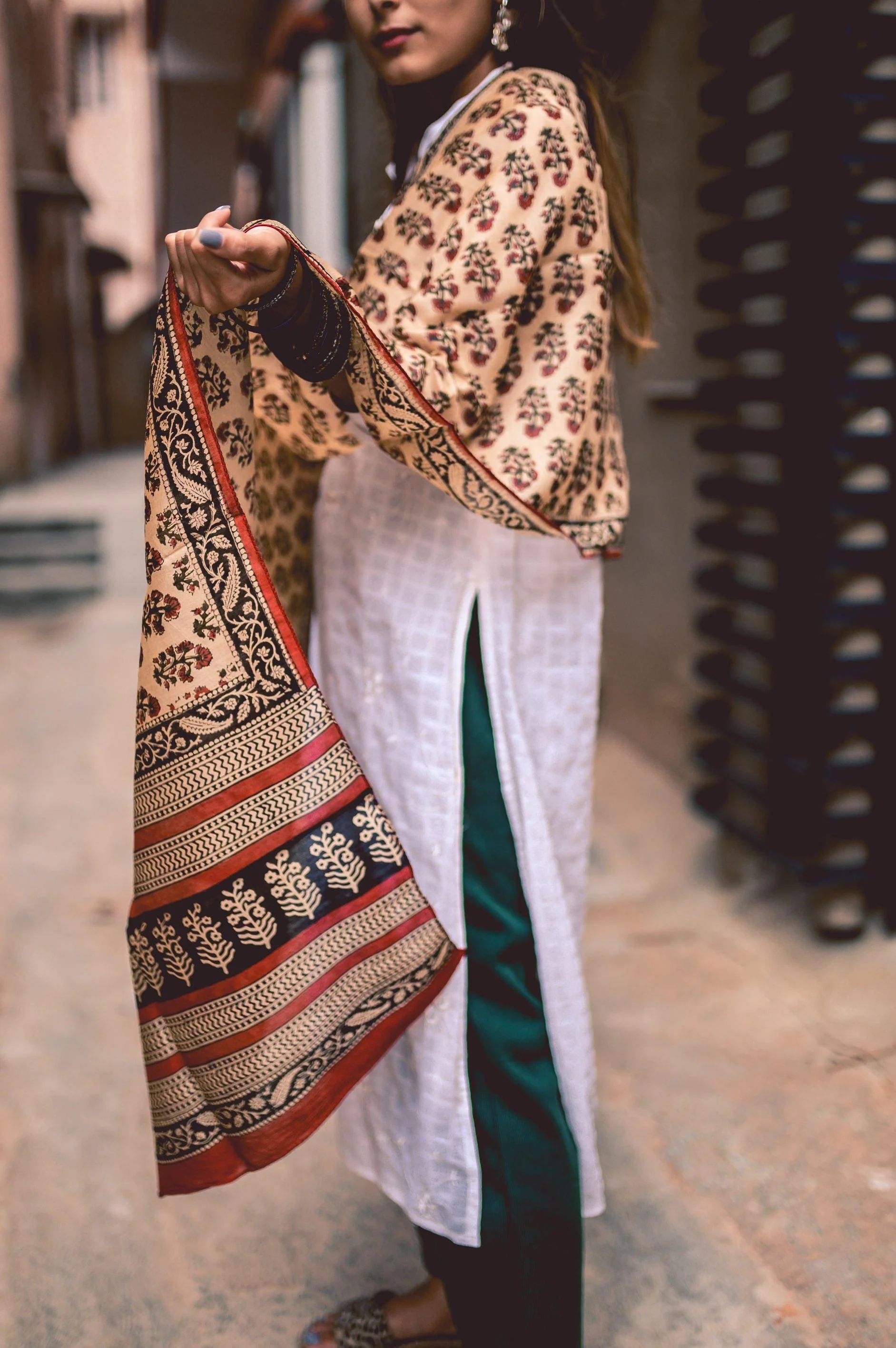Our work with natural dyes connects us back with nature and inspires us to work with age old craft traditions of India.This special story has been created using Bagru Siyahi printing technique.We have simplified the process of printing by skipping the dyeing process and using the mordant-edĀ fabric to lend a unique color to the silk cotton fabric.