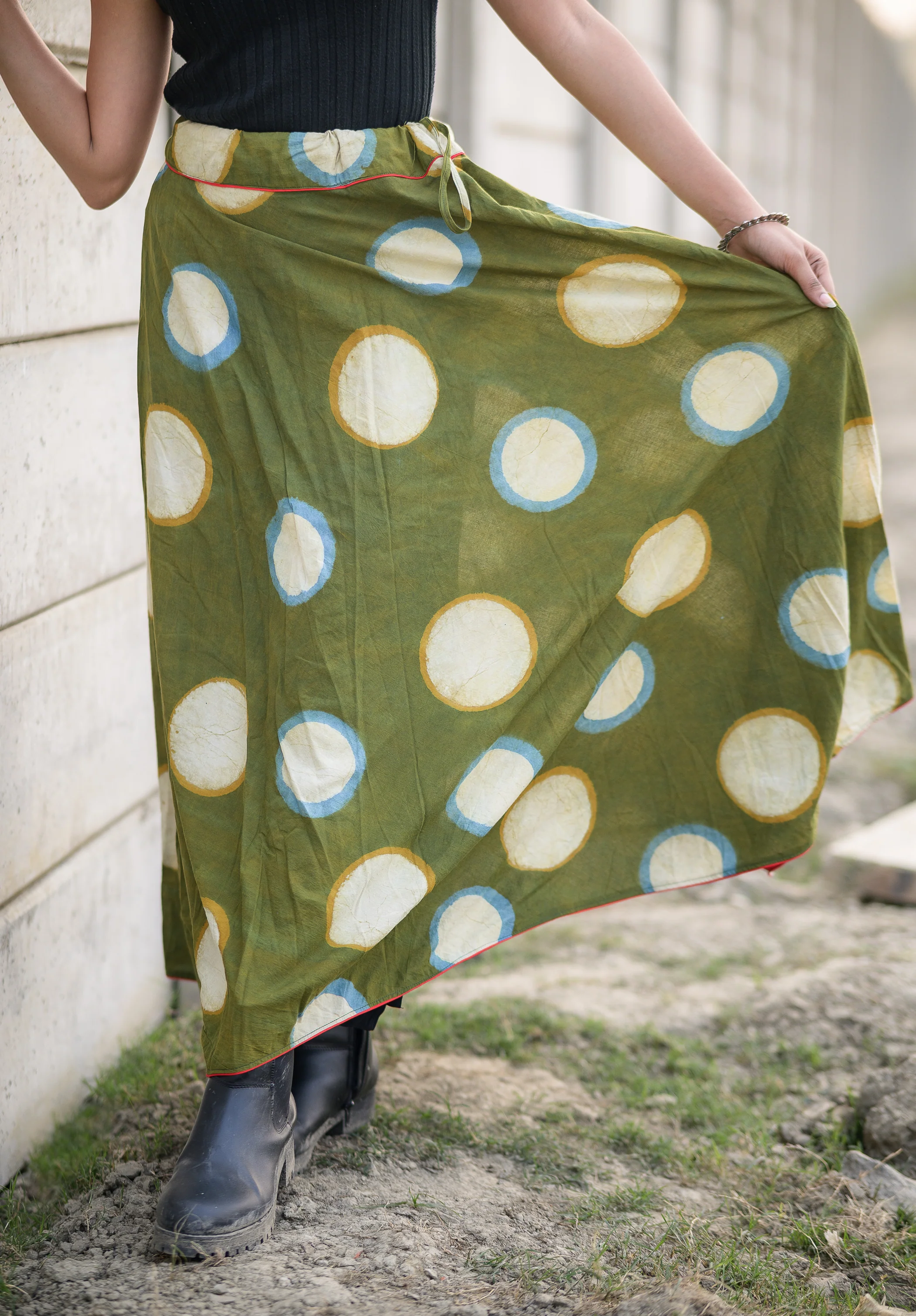 Natural dyed cotton long light green skirt -Noor - Ahira