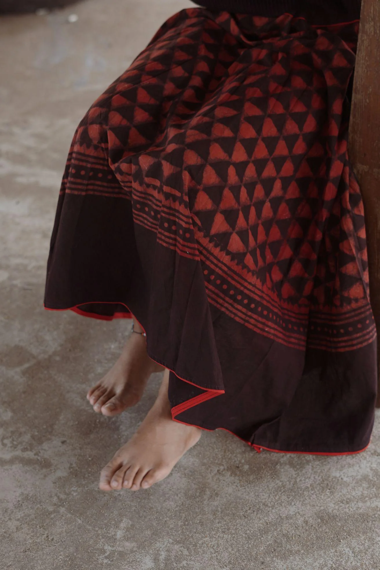 Dabu printed red print skirt - Noor -Afsana