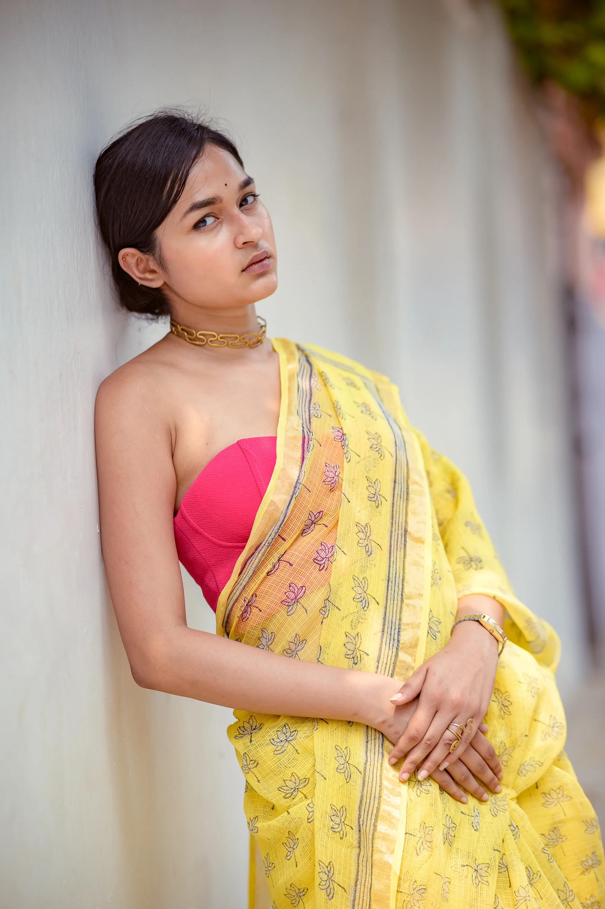 Our Kota range is truly one of a kind. Like the summer breeze on an ethereal lake, it is woven by the karigars of Kaithoon and interlaced with Dabu block printing on the borders and body to craft this chic new drape story.