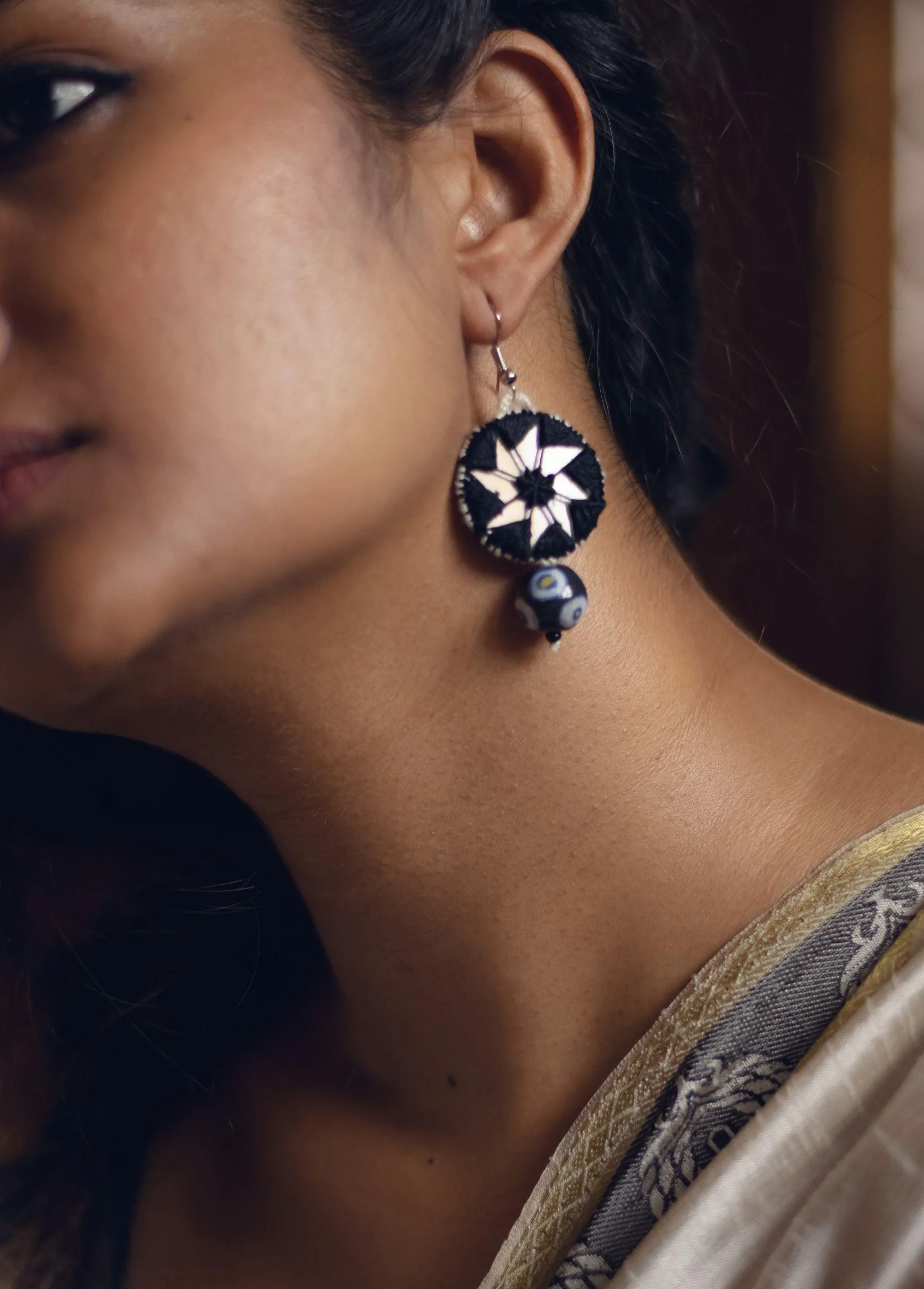 Kaisori blue pottery jewellery- Dual circle thread - black and white