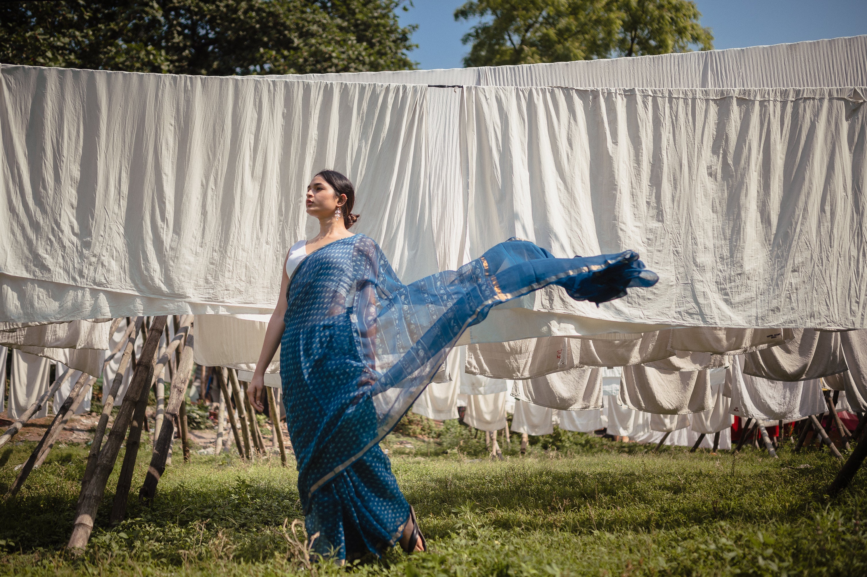 Our Kota range is truly one of a kind. Like the summer breeze on an ethereal lake, it is woven by the karigars of Kaithoon and interlaced with Dabu block printing on the borders and body to craft this chic new drape story.
