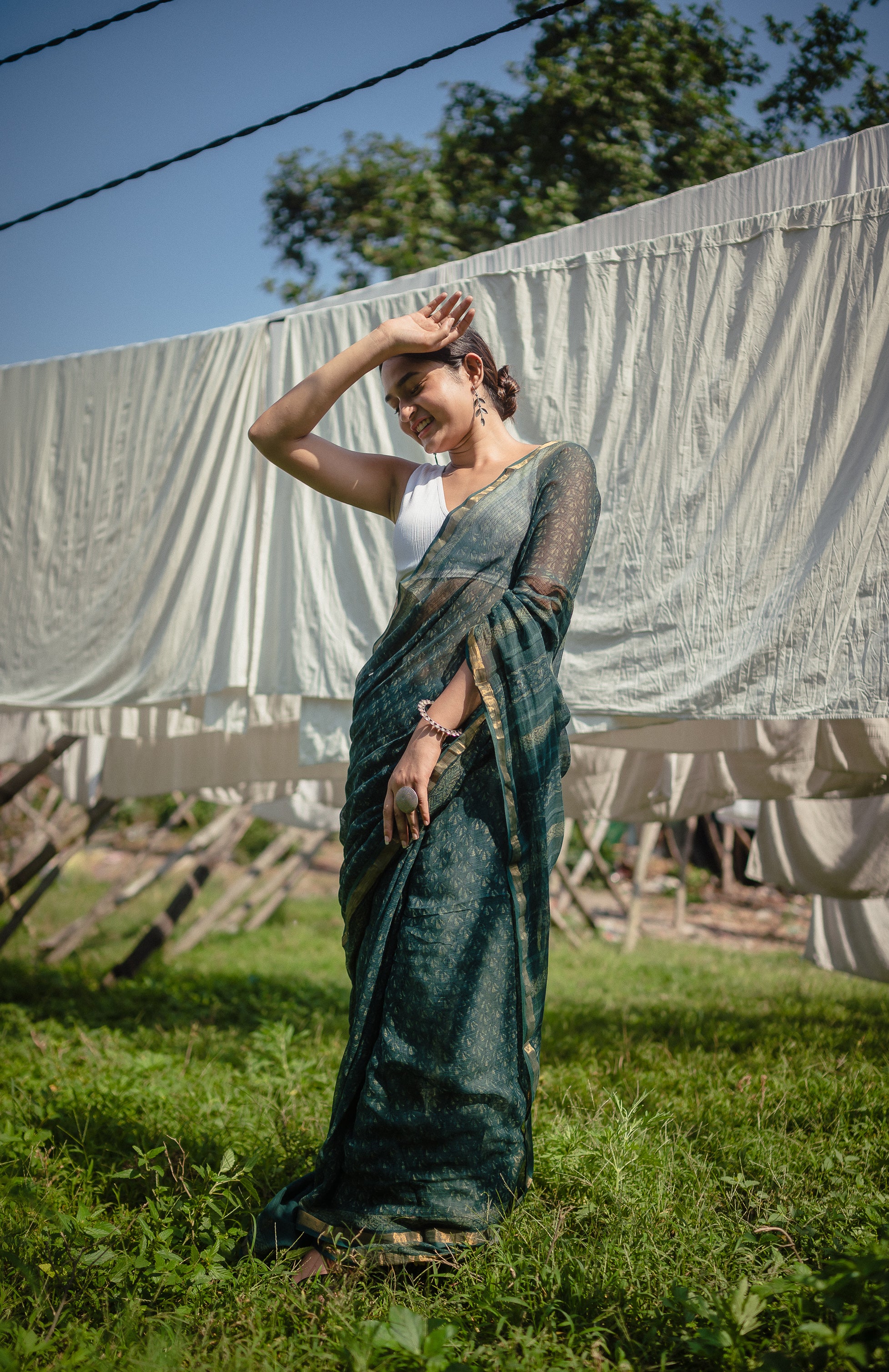 Fabric: Handwoven Kota Doria (silk cotton), hand-block printed in natural dyes.