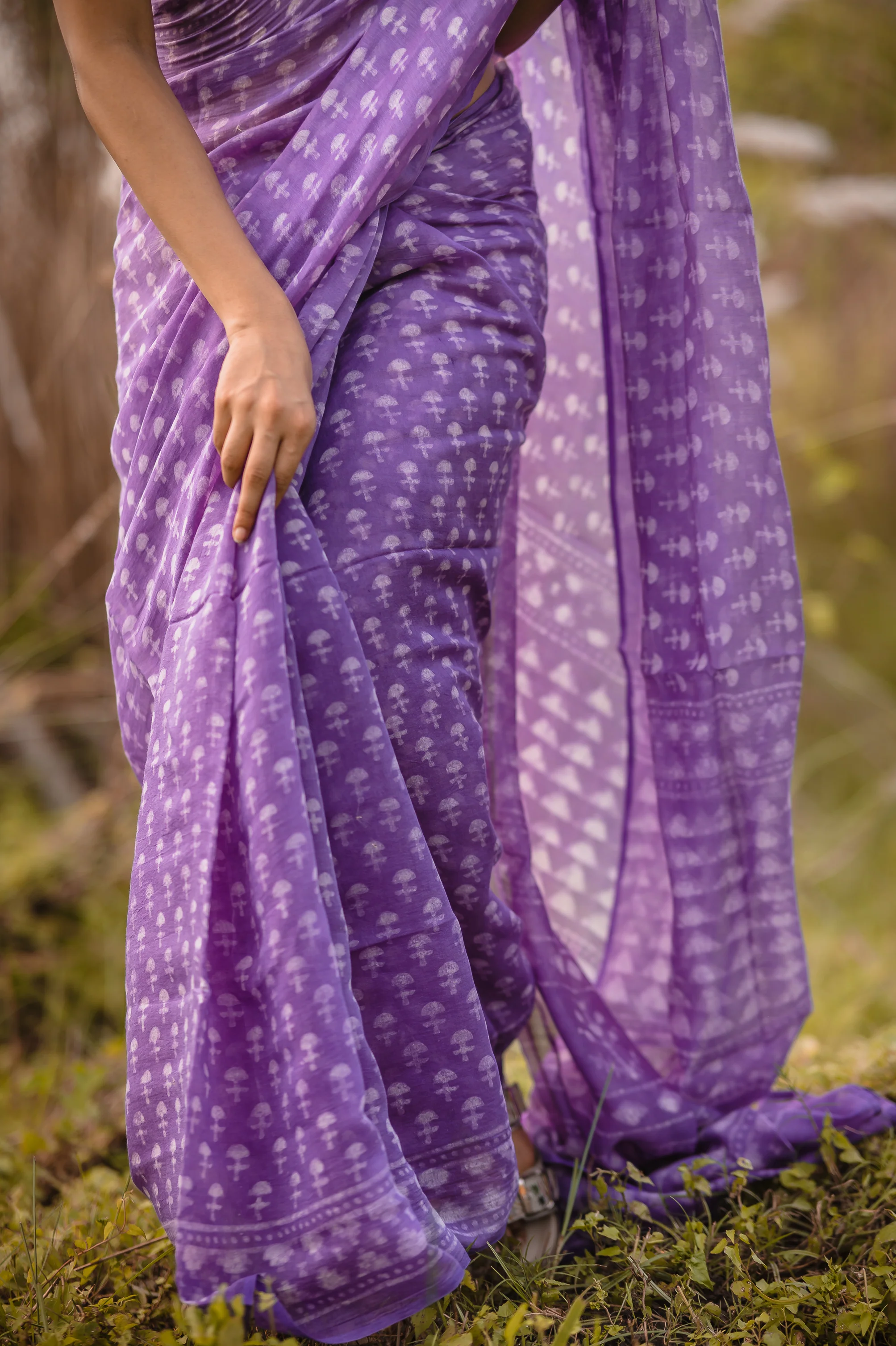 Azo free purple Dabu sarees - Phagun