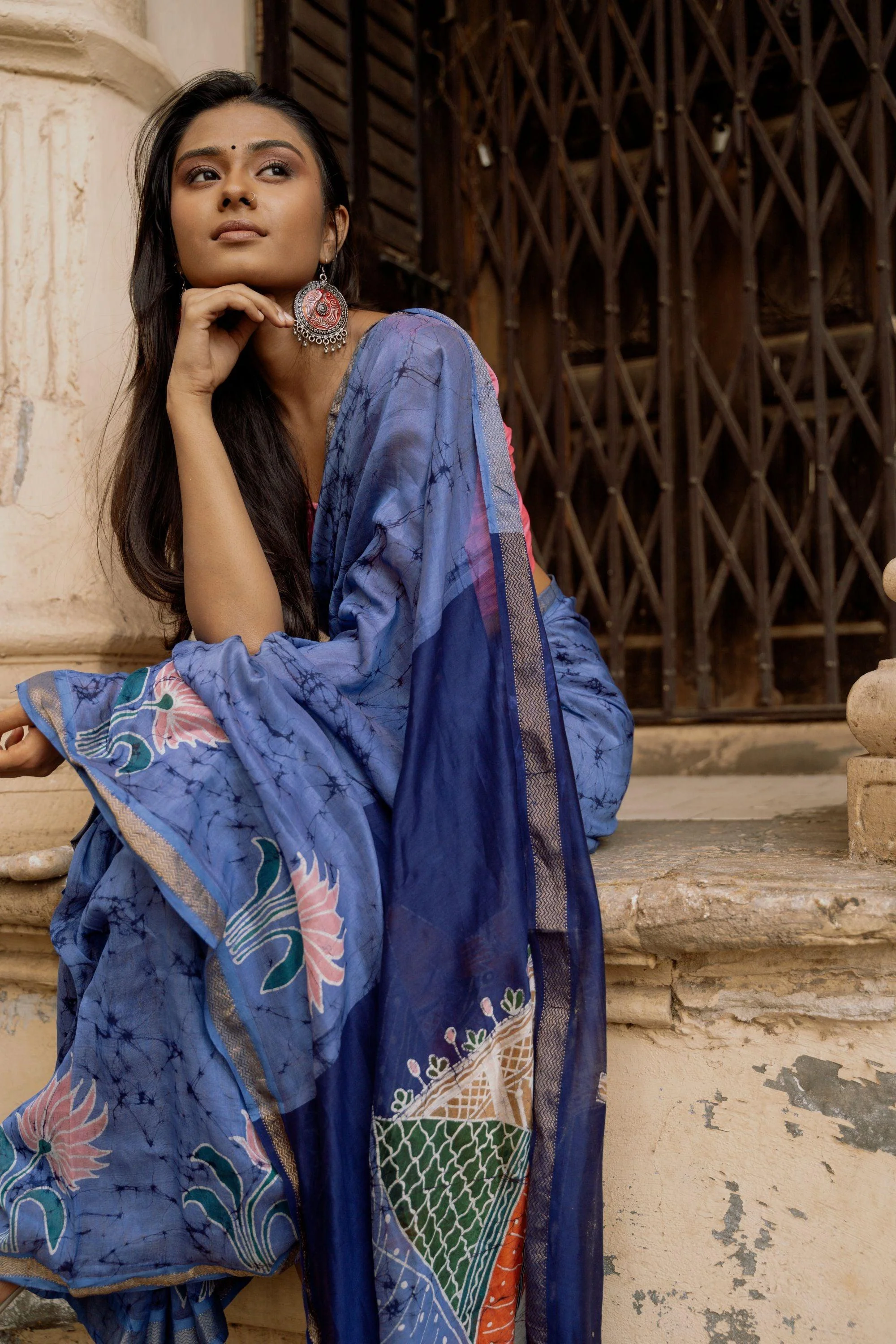 Batik Chanderi saree - Narmada- Ragini Rang Rasiya
