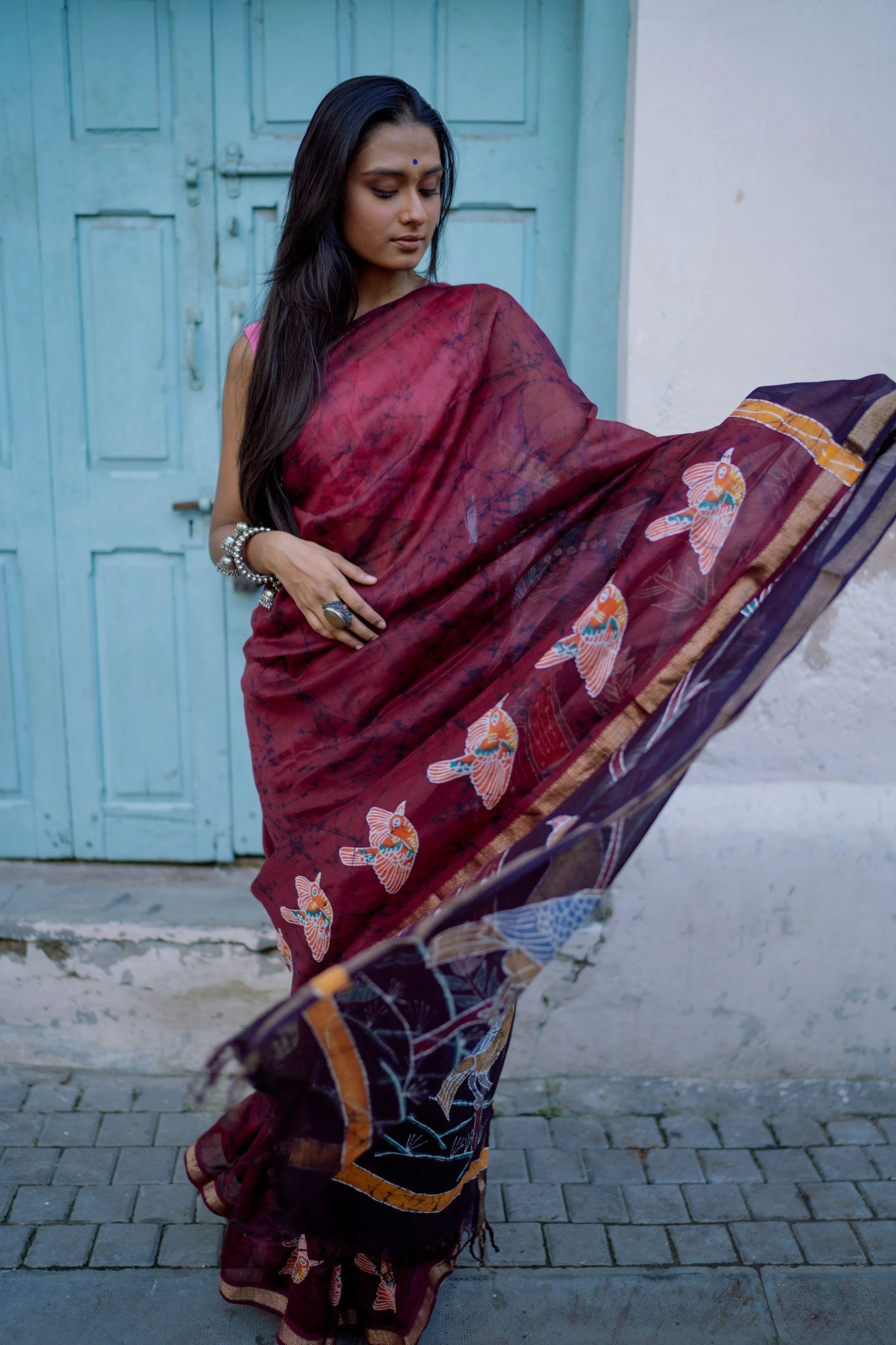 Batik Chanderi saree - Narmada- Ragini in the forest