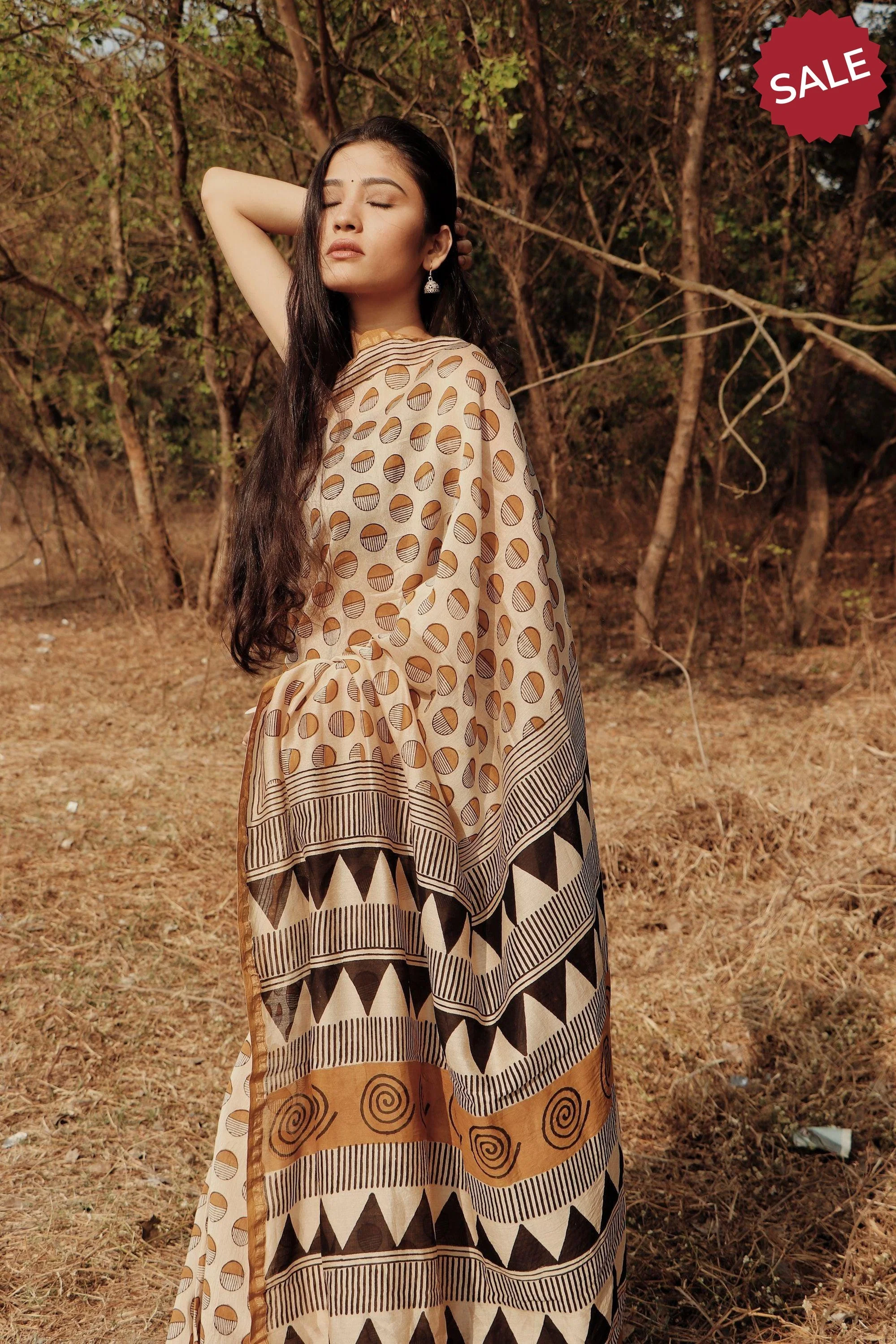 - Fabric: Handloom silk cotton, block-printed with natural vegetable dyes.